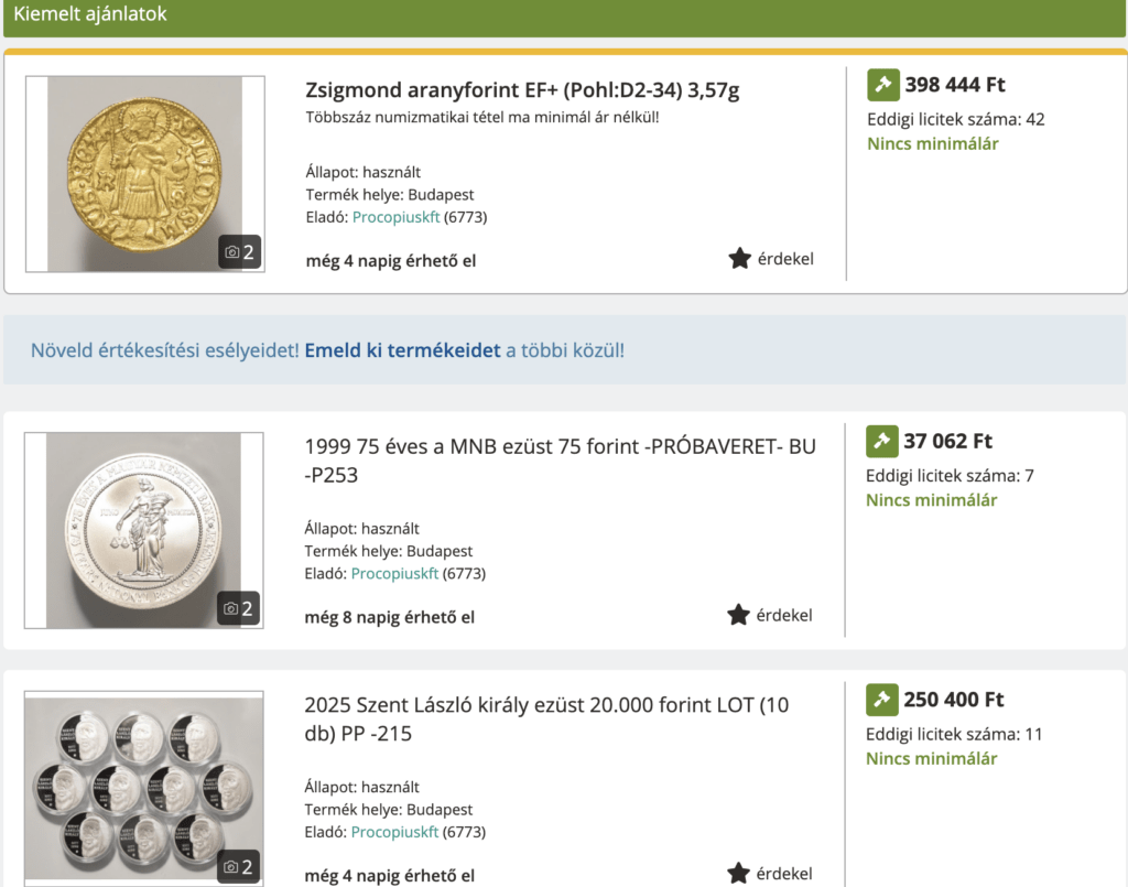 Vatera registered several hundred successful transactions of gold coins last year, but this category is also special, as the average transaction value was nearly 250 thousand forints, compared to the average of tens of thousands for “traditional” (non-precious metal) coins and banknotes.