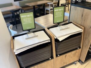 Self-service trays are provided with paper sheets as a hygiene measure. This practical detail underlines BackWerk’s efficient and standardized convenience concept
