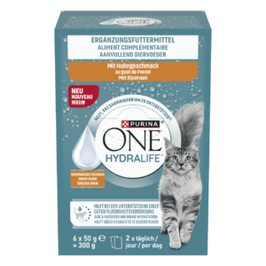 Just two pouches a day* of PURINA ONE HYDRALIFE complementary pet food help support your cat’s hydration with a great chicken/salmon taste. (*For a cat of 4kg.) Additionally, this formula contains a prebiotic to help support a healthy gut microbiome.