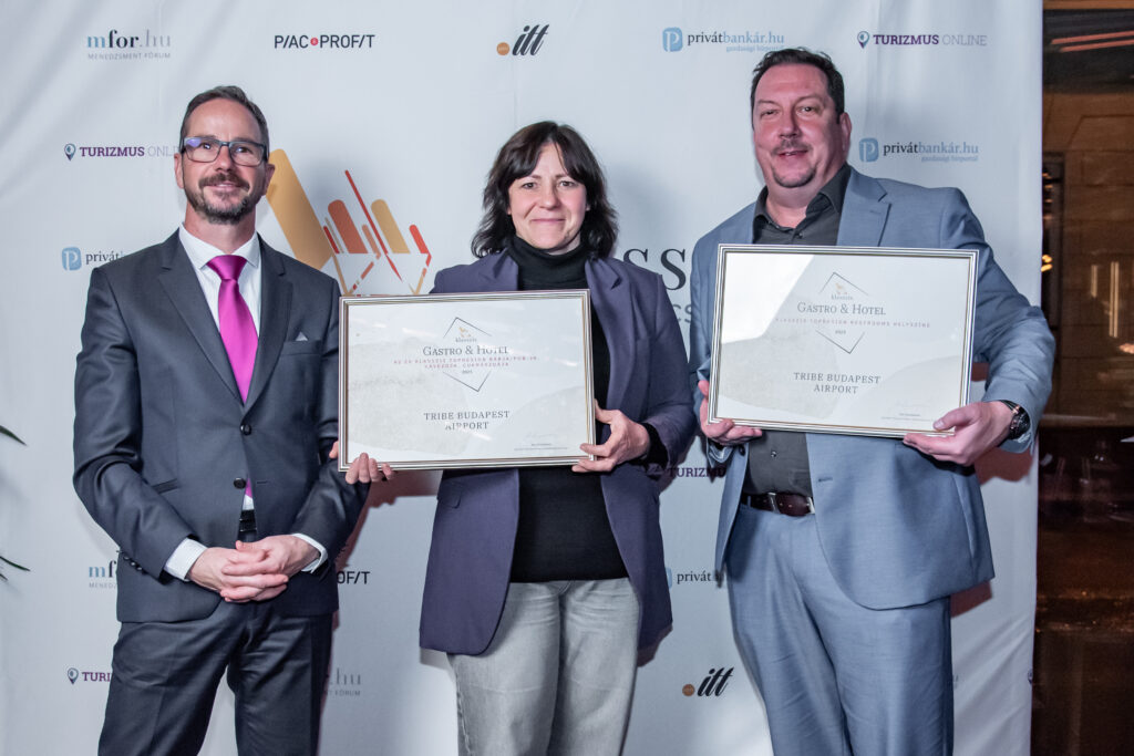 TRIBE Budapest Airport Hotel won two awards at the Klasszis TopDesign 2025 competition, which is one of the most prestigious professional competitions in the domestic HoReCa sector. At the gala held on November 25, the hotel developer WING was awarded the “Classic TopDesign Bar/Pub, Café, Pastry Shop of the Year” (TRIBE Budapest Airport Hotel – Skybar) and “Classic TopDesign Restrooms of the Year”. The professional jury awarded the hotel for its outstanding architectural and interior design solutions, complex design philosophy and high-quality guest experience.