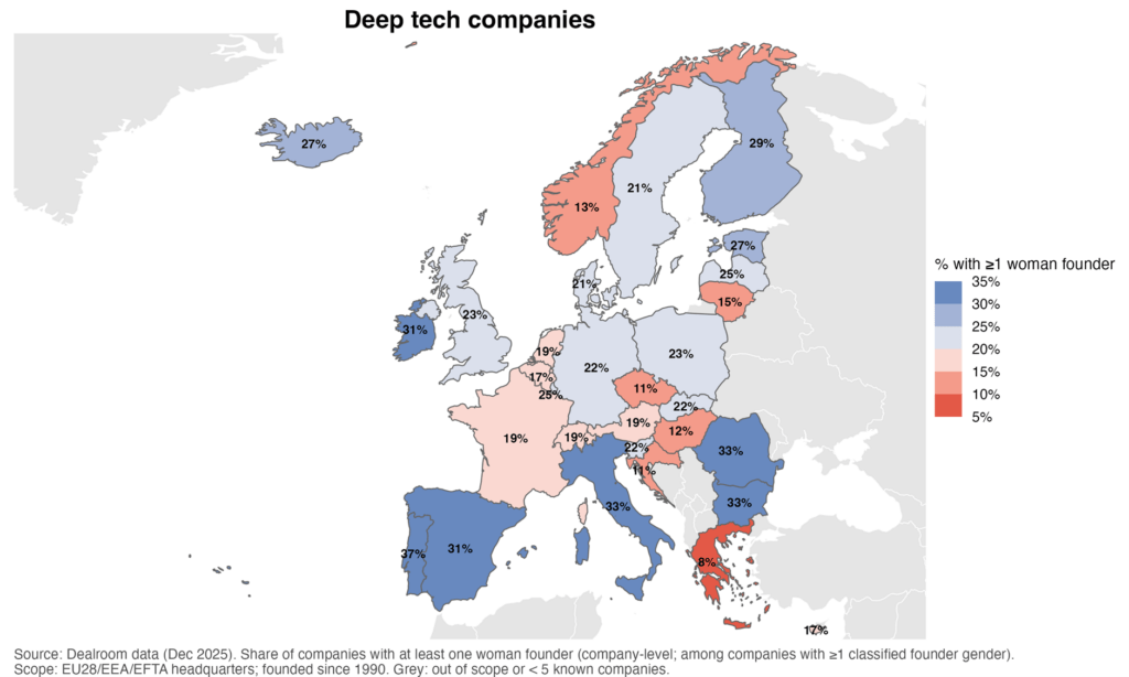 Már ebben a korai szakaszban is tartós egyenlőtlenségek rajzolódnak ki. Európa-szerte azok a startupok, amelyeknek legalább egy női alapítójuk van, az összes kockázatitőke-finanszírozási kör mindössze 14,4%-át, valamint a teljes kockázatitőke-volumen 12%-át vonzzák.