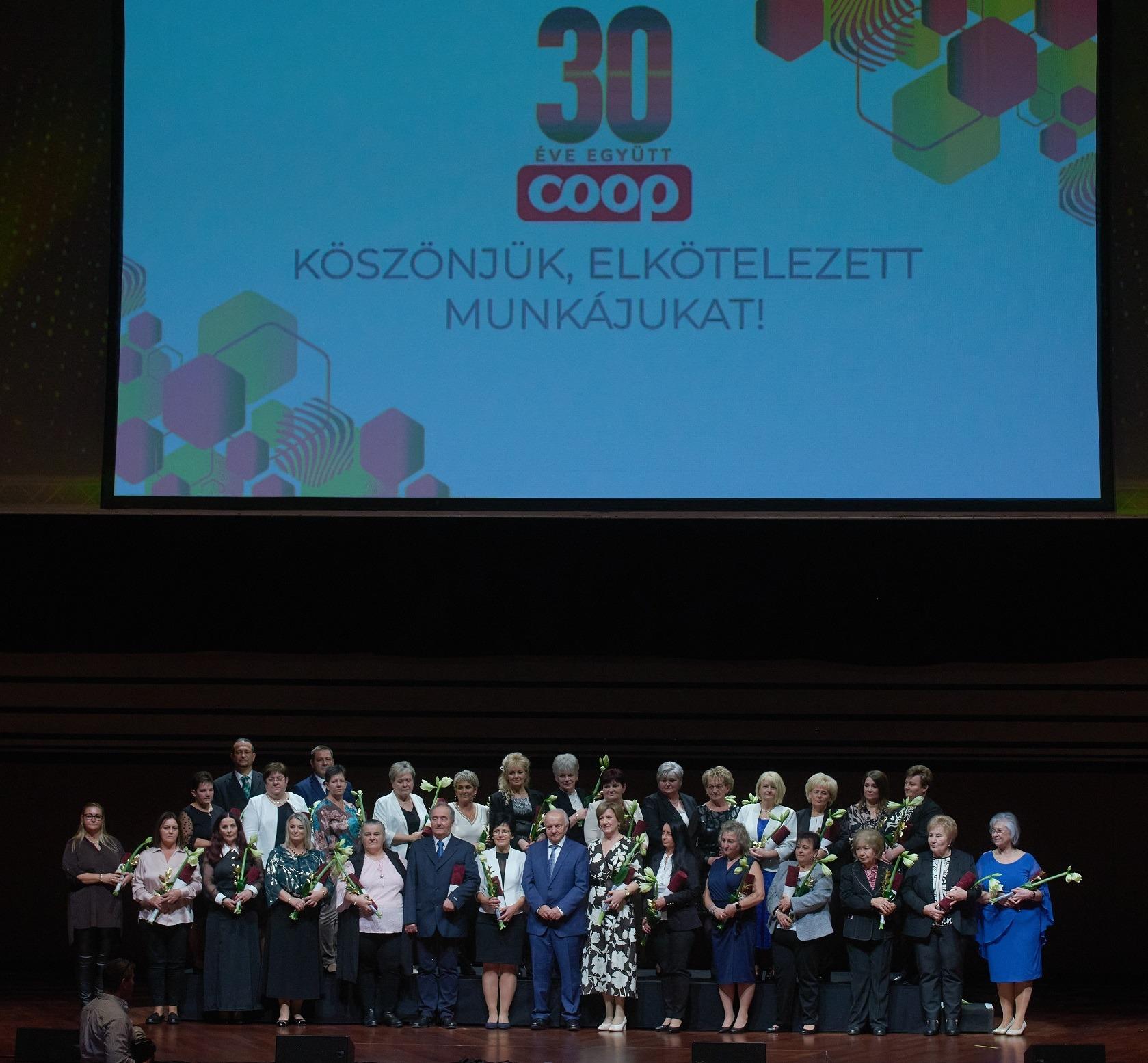 A 30 éves jubileumi ünnepségen tartott beszédében Pekó László, a Co-op Hungary Zrt. igazgatóságának elnöke kiemelte: az elmúlt 30 évet a folyamatosan változó üzleti környezetnek való megfelelés, a fejlesztés és az innováció jellemezte, azonban a Coop életében állandóan jelen voltak azok az értékek – a minőség iránti elhivatottság, a felelős fejlődés, a magyar vidék iránti elkötelezettség, a hazai termékek támogatása, a közösségi szerepvállalás, a nemzeti öntudat és a teljesítmény elismerése –, amelyek három évtizede kötik össze az üzletláncot a szűkebb és tágabb környezetével, és amelyek megfelelő alapot jelentenek a következő 30 évre.
