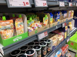 Az egyik új polc kizárólag a tasakos termékeké, amelyek a müzlitől és a „tízórai” opcióktól a zabkásán át a desszertekig számtalan változatban elérhetők, hangsúlyozva a Lidl hordozható kényelem irányába törekvését. A választék teljes egészében márkázott termékeket foglal magába – saját márkás tasakos terméket itt nem találnak a vásárlók.