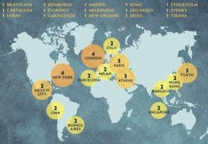 Az előkelő helyek földrajzi eloszlása is változott. Bár London és New York továbbra is központi szereplők, ma már nem dominálnak úgy, mint régen: korábban a csúcsbárok negyedét adták, most mindössze négy-négy hellyel képviseltetik magukat a TOP50-ben. A kínálat szélesebb, mint bármikor ezt megelőzően: a díjazott bárok 29 városban működnek, köztük először Tirana, Pozsony és Kanton is a listán. Európa továbbra is a legerősebb kontinens 23 hellyel, Ázsia 12-t, Észak-Amerika hetet mondhat magáénak.