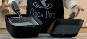 Az ORCA One-Pot egy lenyűgöző többfunkciós edény: használható hagyományos fedeles lábosként, gőzölőként, olajsütőként, grillserpenyőként vagy akár párolóedényként is. A háromszorosan „beégetett” öntöttvas kivitel rendkívül tartós, és akár 370 °C hőmérsékleten, tábortűz fölött is biztonságosan használható.