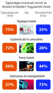 A fogyasztók 51%-a jelezte, azért növelte italfogyasztását, mert az szerinte egészséges: 23% az alacsonyabb vagy zéró cukortartalmat részesíti előnyben, 23% a valódi és természetes összetevőket keresi, 13% számára a magas fehérjetartalom, 12%-nak pedig a funkcionális összetevők fontosak. Ennek fényében úgy tűnik, van még tere a termékfejlesztésnek, hiszen az igényt a piac jelenleg nem igazán követi: az újonnan bevezetett termékek 18%-a kapható csökkentett cukortartalommal, mindössze 8% készül természetes összetevőkkel, fehérjét 5%, vitaminokat és ásványi anyagokat pedig 4% tartalmaz.