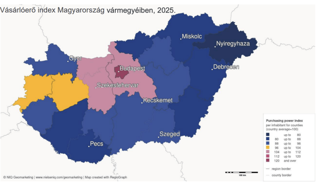 Magyarország: Budapesten és környékén, valamint a fővárostól nyugatra a legmagasabb a vásárlóerő
