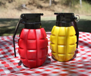 Minimum feldobják a kerti grillezést a kézigránát formájú műanyag ketchup- és mustáradagolók, de robbanni legfeljebb csak az ízek fognak a szájban. Ha meg is próbálnánk elhinni, hogy a fura flakon mindössze a csípősséget jelzi, a „taktikai” BBQ kötény egyértelművé teszi, mire megy ki a játék…