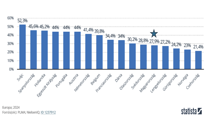 Saját márkák térnyerése Európában: Magyarország 28%-kal a középmezőnyben