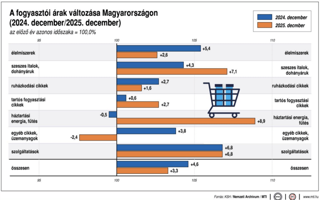 KSH: decemberben 3,3 százalékkal, 2025-ben átlagosan 4,4 százalékkal nőttek az árak