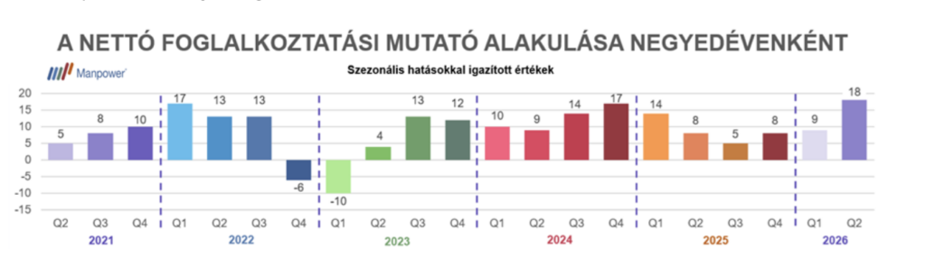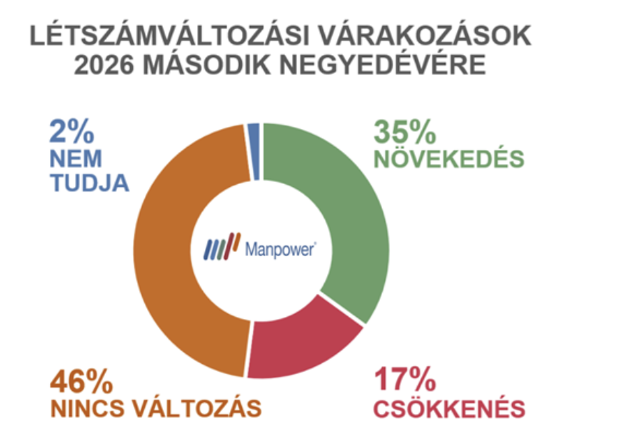 A ManpowerGroup a világ 42 országában, közel 42 ezer munkáltató körében folytatta le negyedéves felmérését, melynek keretében Magyarországon a munkáltatók 540 fős reprezentatív mintájában szereplőket kérdezték meg 2026 második negyedéves munkaerő-felvételi szándékaikról.