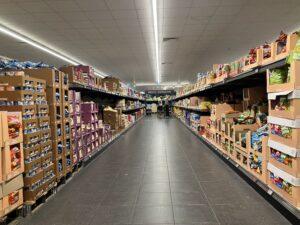 Széles sorok és jól strukturált polcok könnyítik meg a vásárlók számára a bolti tájékozódást
