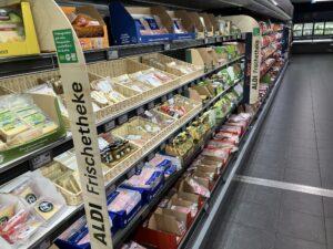Az Aldi Frischetheke márkanév alatt az önkiszolgáló sajt- és csemegeválaszték fonott kosarakban jelenik meg a prémium hatás érdekében, amit az állatjólétre és bio jellegre utaló jelzések is támogatnak.