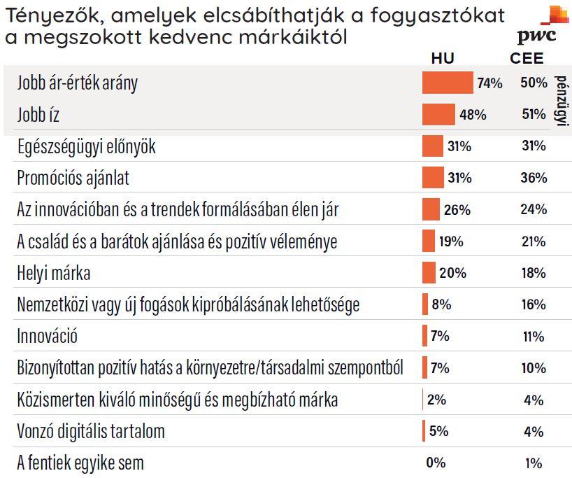 Magyarországon a márkaváltást főként a jobb minőség és a kedvezőbb ár vezérli. A fogyasztók közel háromnegyede, 74%-a mindig jobb ár-érték arányt keres szemben Közép- és Kelet-Európa más országaival, ahol a megkérdezetteknek körülbelül a fele hajlandó ugyanebből a célból váltani.
