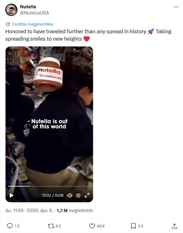 Egy üveg Nutella is feltűnt a NASA Artemis II űrhajóján, súlytalanul lebegve, miközben a legénység elhaladt a Hold mellett.