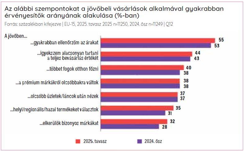 Hasonló motivációból enyhén (28-ról 40%-ra) nőtt azoknak az aránya, akik úgy tervezik, a jövőben inkább otthon főznek, vagy éppen bizonyos márkákat elkerülnek.