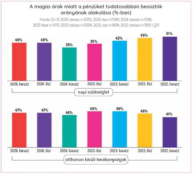 A költséghatékonyság mellett az életmód tudatosabbá válását is jól tükrözi, hogy a fiatalok gyakrabban választják az otthoni főzést; körükben nagyobb a hajlandóság az önjutalmazásra, legyen szó apró luxuscikkekről vagy élményalapú vásárlásról; de fokozódott a készletezési hajlam is.