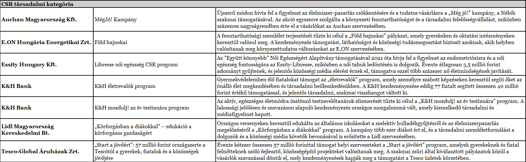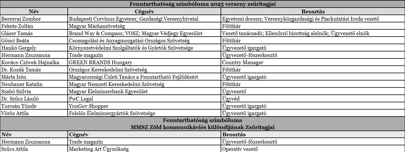 Az alábbi táblázatban a Fenntarthatóság Szimbóluma 2025 nyertesei, valamint pályázatuk rövid leírása olvasható.