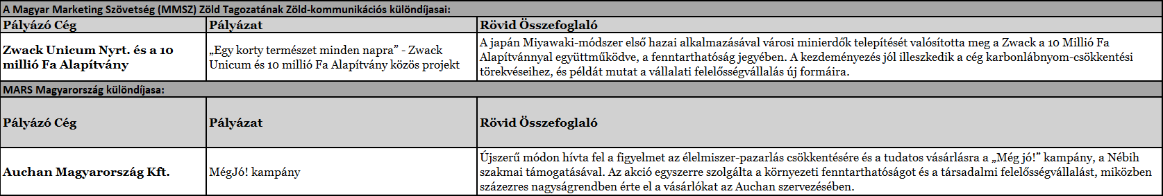 Minden Díjazottnak gratulálunk a Zsűritagok nevében, és várjuk a következő versenyre is a nagyszerű fenntarthatósági pályázatokat a www.fenntarthatosagszimboluma.hu oldalon!