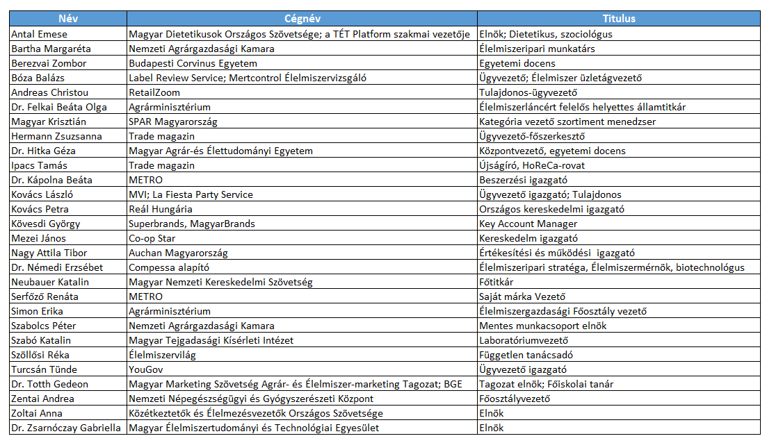 A szakmai zsűri tagjai között idén is helyet foglalnak a kereskedelmi cégek döntéshozói, beszerzői és értékesítési szakemberei, valamint a hazai élelmiszeripar, kereskedelem, csomagolástechnika, marketing, kutatás, hatósági és egyetemi szféra meghatározó szervezeteinek és testületeinek képviselői, akik szakértelmükkel biztosítják a verseny szakmai hitelességét.