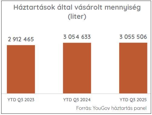 A magyar háztartások samponhasználata az elmúlt években kiegyensúlyozott képet mutat, miközben a kategória értéke látványosan emelkedik. A YouGov háztartás panel adatai alapján a samponok összvolumene YTD Q3 2023 és YTD Q3 2024 között 2,9 millió literről valamivel 3,05 millió liter fölé nőtt, és azóta gyakorlatilag stagnál.