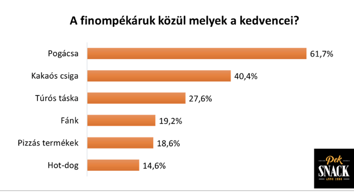 A régiós jelenléttel rendelkező Pek-Snack Csoport országosan reprezentatív közvéleménykutatásában a finompékáruk vásárlási szokásaival kapcsolatos hazai preferenciákat tárta fel. Az eredmények alapján a kényelmi kategóriába tartozó termékeket a magyarok 68 százaléka naponta vagy hetente többször fogyasztja, további 14 százalékuk legalább heti rendszerességgel. A finompékáru így mára a mindennapi étkezés stabil részévé vált, növekvő trend mellett.
