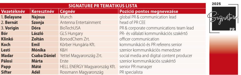A Signature 40 egy egyedülálló lehetőség arra, hogy elismerést és figyelmet kapj a szakmádban. A listára csak a legkiemelkedőbb szakemberek kerülhetnek fel, akik valóban formálják a marketing és kommunikáció jövőjét. Ha úgy érzed, hogy Te is közéjük tartozol, szerezz egy ajánlást a meghíváshoz, majd add be a pályázatodat, amelyben megmutathatod a világnak, mire vagy képes.