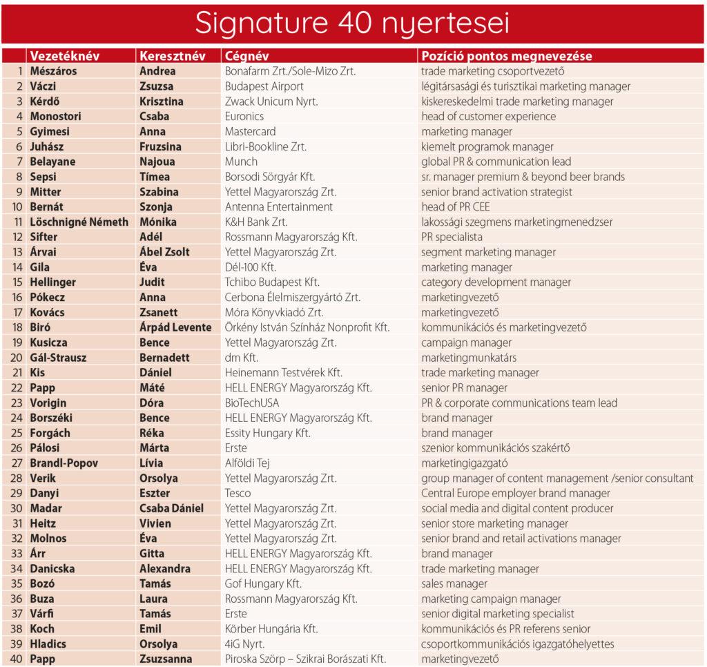 Figyeld a jövő évi Signature 40 felhívást a signature40.hu oldalon!