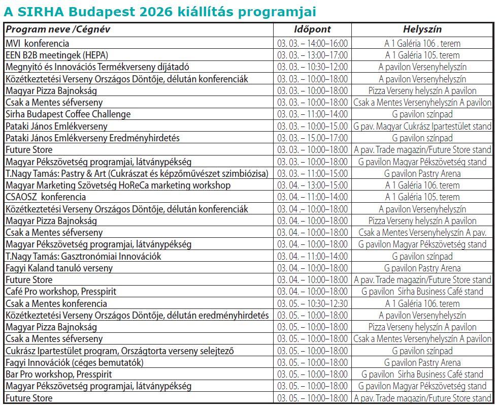 A SIRHA Budapest nemzetközi szakkiállításként ilyen fórumot biztosít: lehetőséget teremt arra, hogy a cégek bemutassák legújabb termékeiket és szolgáltatásaikat, a szakemberek megosszák egymással bevált gyakorlataikat, és közösen keressék a szakmát érintő problémák megoldását. A két éve 16 ország több mint 300 kiállítóját és közel 26 ezer szakmai látogatót vonzó rendezvény egyszerre szolgál üzleti találkozási pontként és trendiránytűként, miközben széles körű szakmai programkínálattal várja a látogatókat.