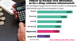 Magyarország 2025 nyarára lekerült az uniós inflációs toplista éléről, de a ráta (~4,2%) továbbra is az egyik legmagasabb az EU-ban (szemben a ~2,4%-os EU-átlaggal).