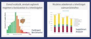 A Smurfit Westrock átfogó SupplySmart Analyser rendszere integráltan vizsgálja a csomagolási és logisztikai folyamatokat. A platform modellezi a csomagolóanyag-felhasználást, a csomagolás folyamatát, a szállítás és a raktározás összes költségét és effektivitását, és különböző forgatókönyveket kínál. Az adatalapú döntéshozatalt a fenntarthatósági szempontokkal összekapcsolva segít kiválasztani a legoptimálisabb megoldást.