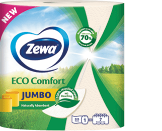 Az új ZEWA Eco Comfort háztartási papírtörlő 100%-ban újrahasznosított papírból készül, 100%-ban biológiailag lebomló és fehérítésmentes, így környezetbarát megoldást kínál a megszokott Zewa minőségben.